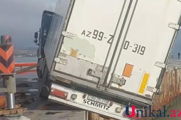 "Agro Logistics"in yük maşını Bakıda dənizə düşməklə üzləşdi - VİDEO