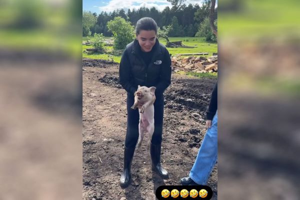 Məşhur aparıcı qucağında donuzla poz verdi
