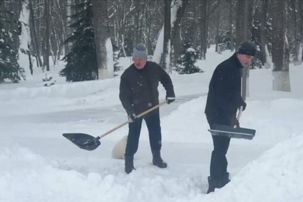 Lukaşenko oğlu ilə qar təmizlədi
