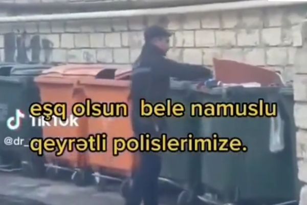 Azərbaycan və Türkiyə bayraqlarının zibil qutusuna atıldığını görən polis