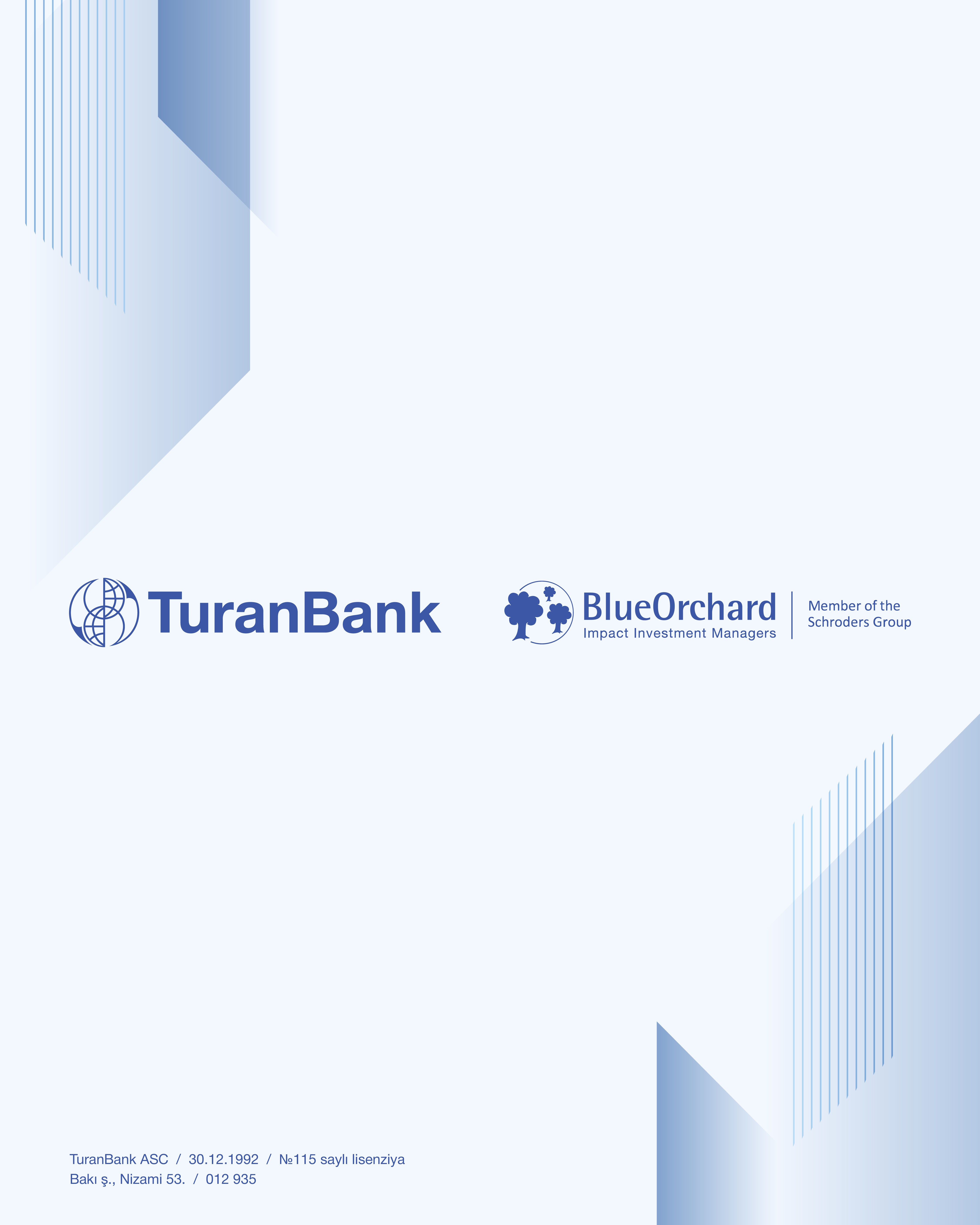 Sazişə əsasən, BlueOrchard Beynəlxalq Mikromaliyyələşdirmə Fondu TuranBank-a 3 illik müddətə 10 milyon ABŞ dolları məbləğində Azərbaycan manatında (AZN) sintetik kredit ayırıb. Cəlb edilən vəsait ölkəmizin, xüsusilə regionlarda kiçik və orta biznesin maliyyələşdirilməsinə yönəldilməklə sahibkarlıq subyektlərinin yerli valyutada maliyyə resurslarına çıxış imkanlarını daha da genişləndirəcək, dayanıqlı iqtisadi artımı təmin edərək iqtisadiyyatın inklüziv şəkildə inkişafına töhfə verəcək.