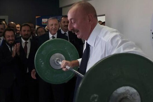 Əliyev ştanq qaldırdı - Ərdoğan və üçqat olimpiya çempionu