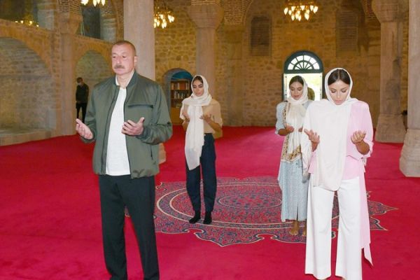 İlham Əliyev və xanımı Yuxarı Gövhərağa məscidini ziyarət etdi