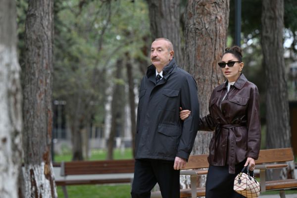 İlham Əliyev və birinci xanım yeni parkın açılışında