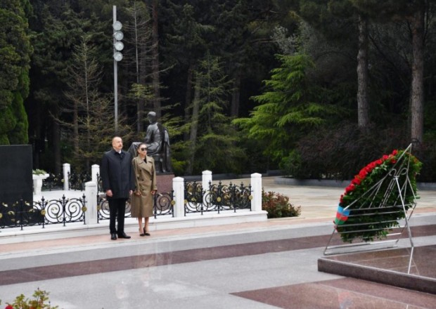 İlham Əliyev və xanımı Ulu Öndər Heydər Əliyevin məzarını ziyarət etdi