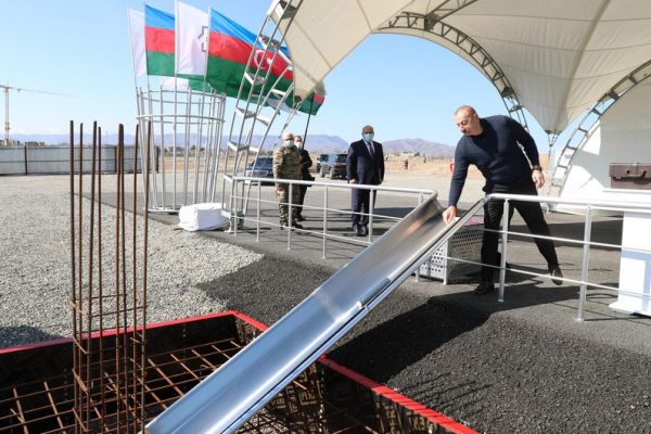 İlham Əliyev Ağdam Sənaye Parkında iki müəssisənin təməlini qoyub
