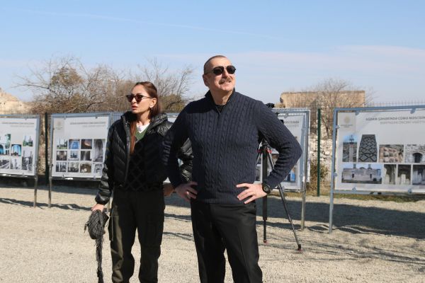 İlham Əliyev və birinci xanım Ağdam Cümə məscidində bərpa işlərinin gedişi ilə tanış olublar