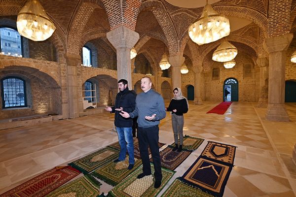 Prezidentlə ailəsi Yuxarı Gövhər Ağa məscidində -