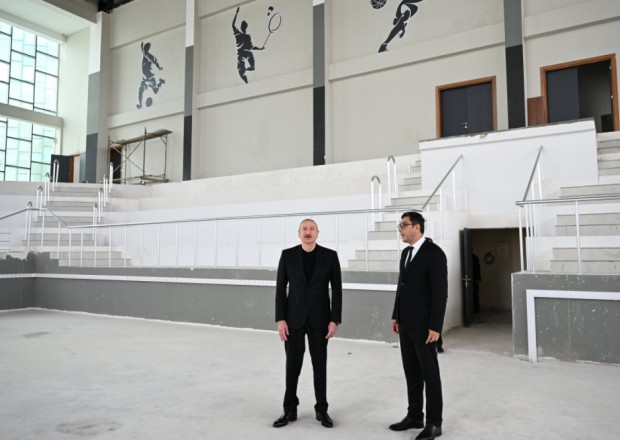 Prezident Yevlax Olimpiya İdman Kompleksindəki işlərlə tanış oldu