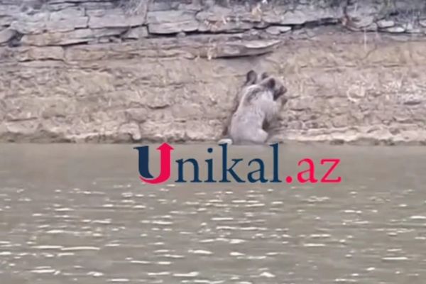 Xocalıda balıq ovuna çıxan ayı - VİDEO