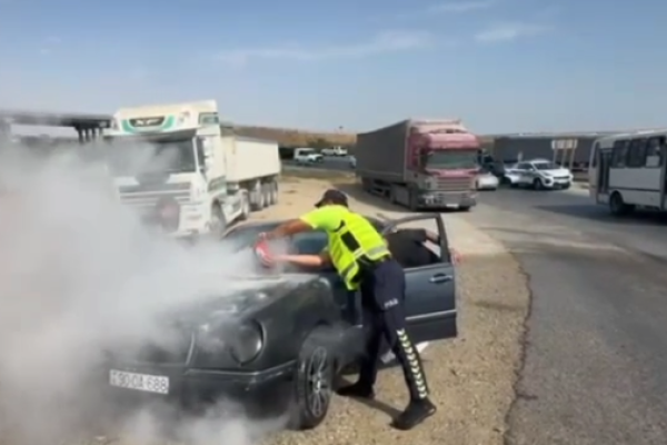 Hərəkətdə olan avtomobil yandı -