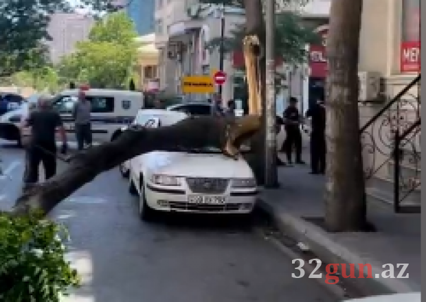 Bakıda ağac qırılıb avtomobillərin üstünə