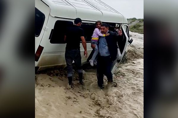 Sel mikroavtobusu apardı, azyaşlı son anda xilas edildi - Video