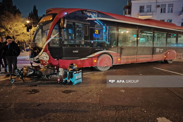 Bakıda avtobus motosikletçini vurdu - Sürücü şok keçirir