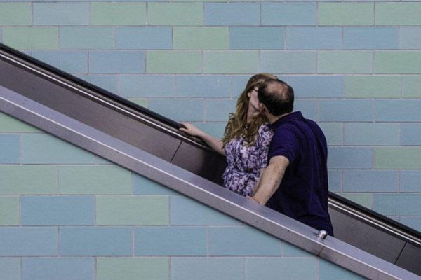 Eskalatorda öpüşən oğlanı nokaut etdi