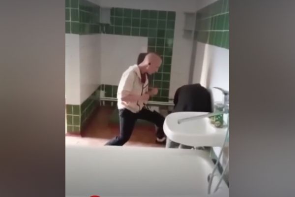 Gənc oğlan qocalar evinin tualetində yaşlı kişini döyüb və videoya düşüb