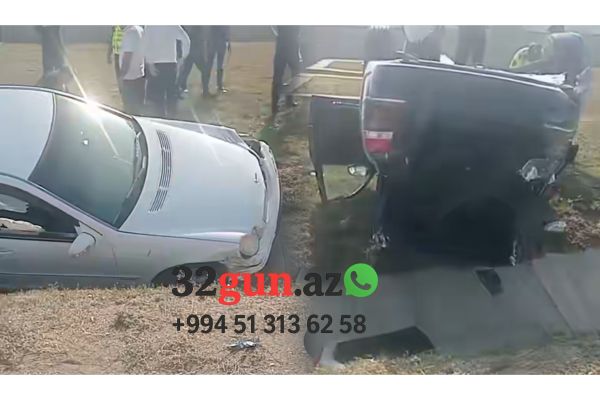 Qaradağda ağır yol qəzası – iki avtomobil bir-birinə çırpılıb, biri su kanalına aşıb