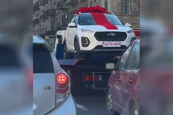 "Sevgililər günü"ndə xanıma verilən hədiyyə Bakıda müzakirə mövzusu oldu (VİDEO)