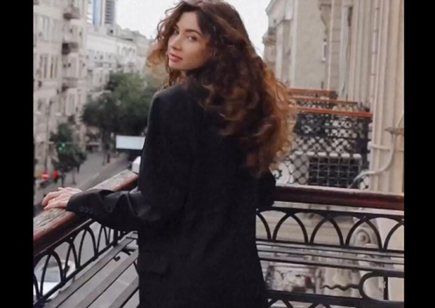 Bakıda eyvanda alt paltarsız çəkiliş edən qızın