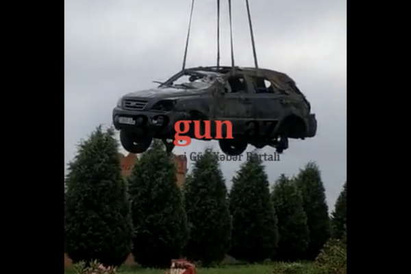 Gəncədə qəzaya düşən avtomonil üçün kran gətirildi (VİDEO)