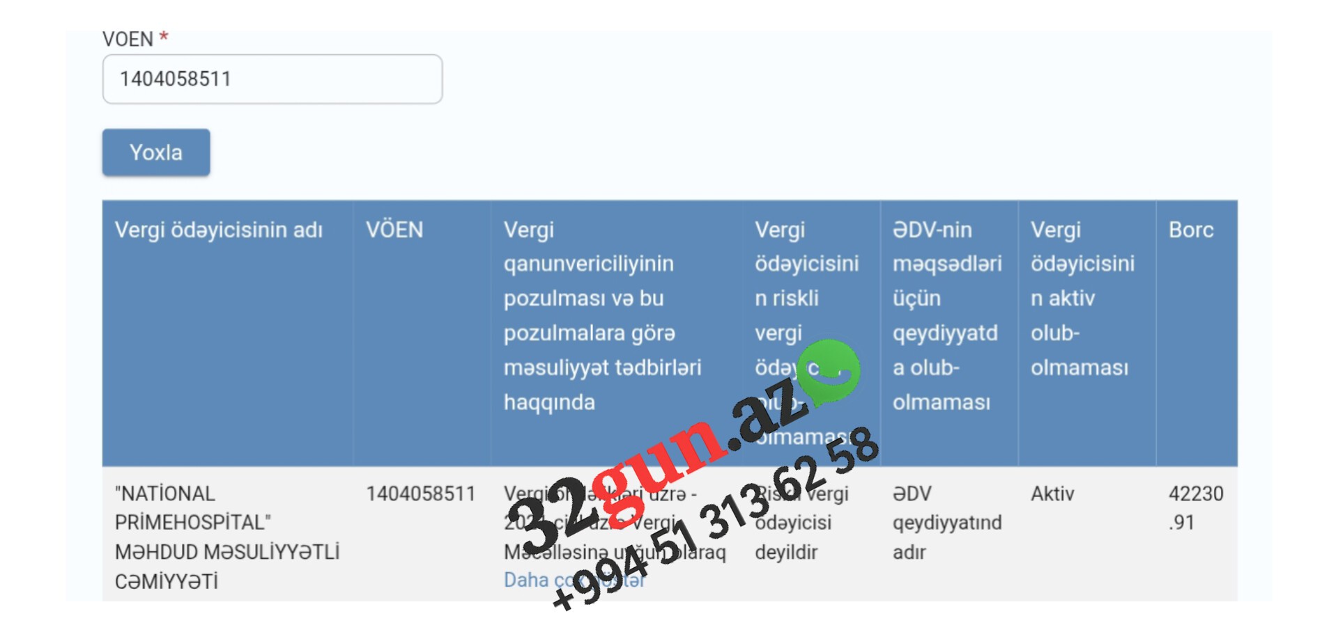 32gun.az xəbər verir ki, sözügedən hospitalın borcu 42.230,91 manat məbləğindədir.