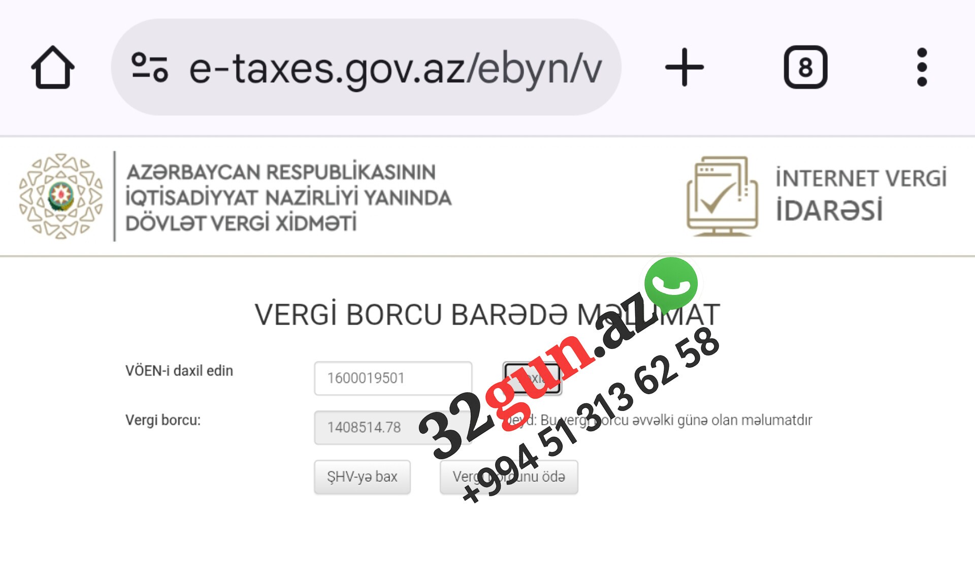32gun.az-ın məlumatına görə, şirkətin dövlət büdcəsinə 1 milyon 408 min 514 manat 77 qəpik həcmində vergi borcu mövcuddur.