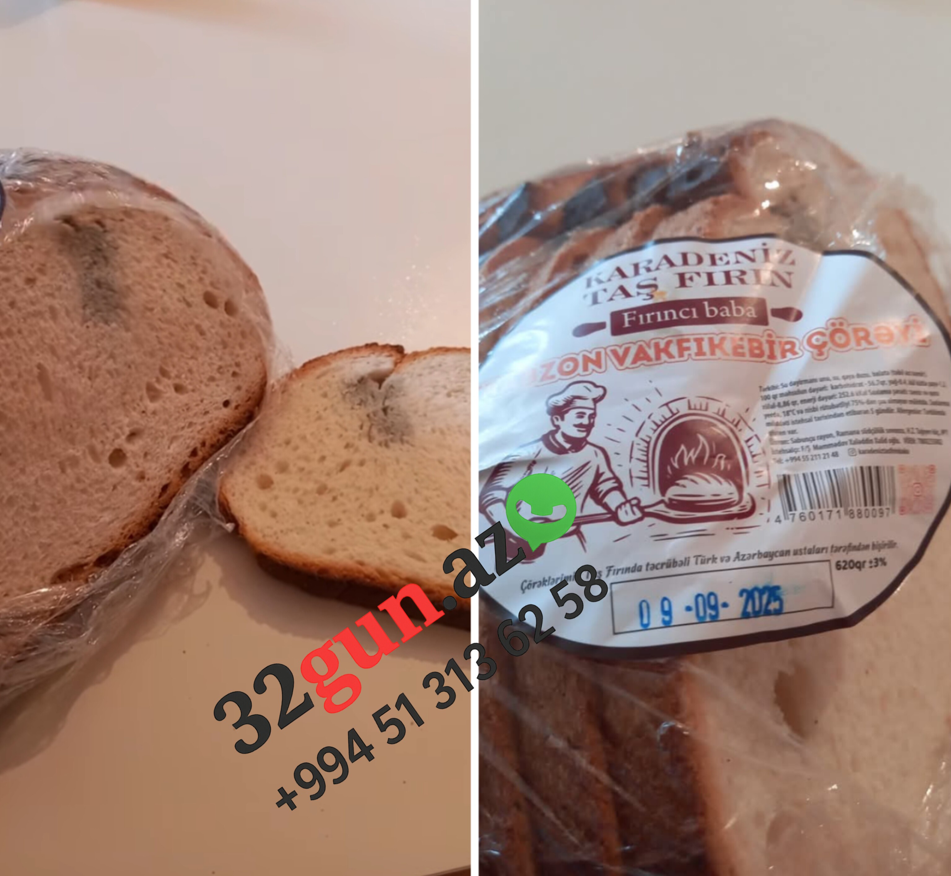 32gun.az xəbər verir ki, müştərinin iddiasına görə, üzərində 09.09.2025 tarixi göstərilən çörəyin hələ saxlama müddəti davam etsə də, məhsulun vəziyyəti normal olmayıb.